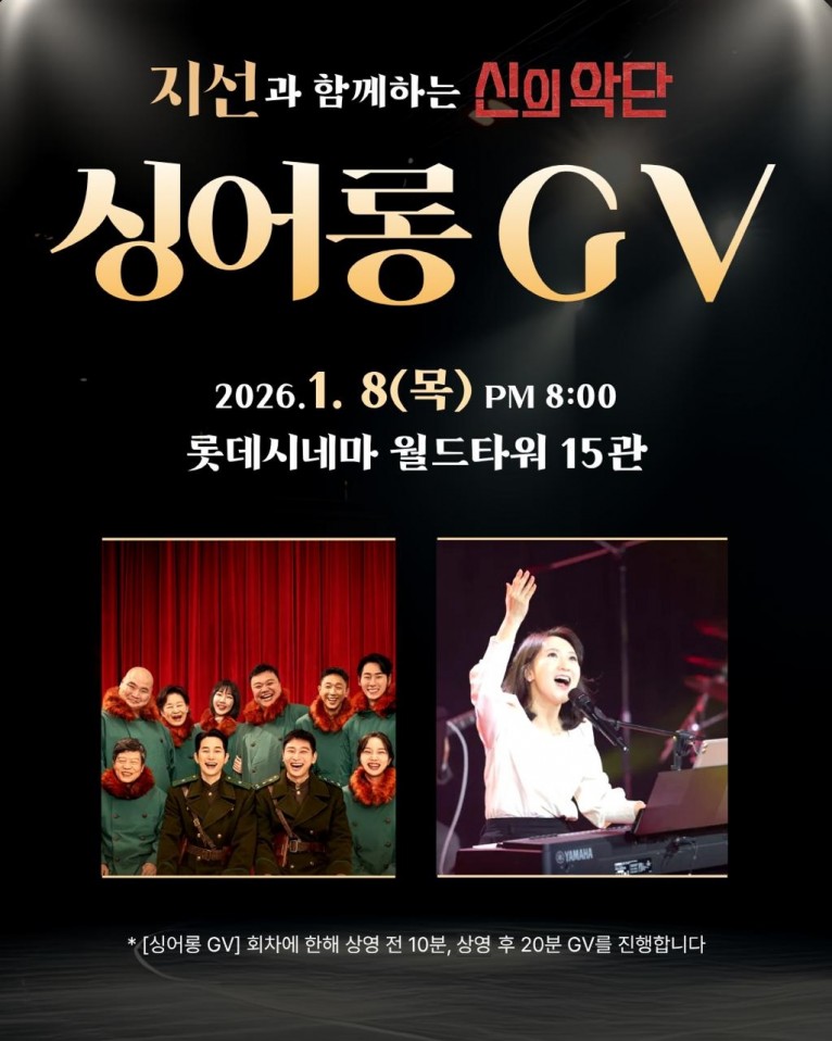 1월 8일 목요일 저녁 8시, 잠실 롯데 월드타워(15관)에서 '은혜'를 부른 찬양사역자 지선과 함께하는 영화 '신의악단' 싱어롱 GV가 열린다.